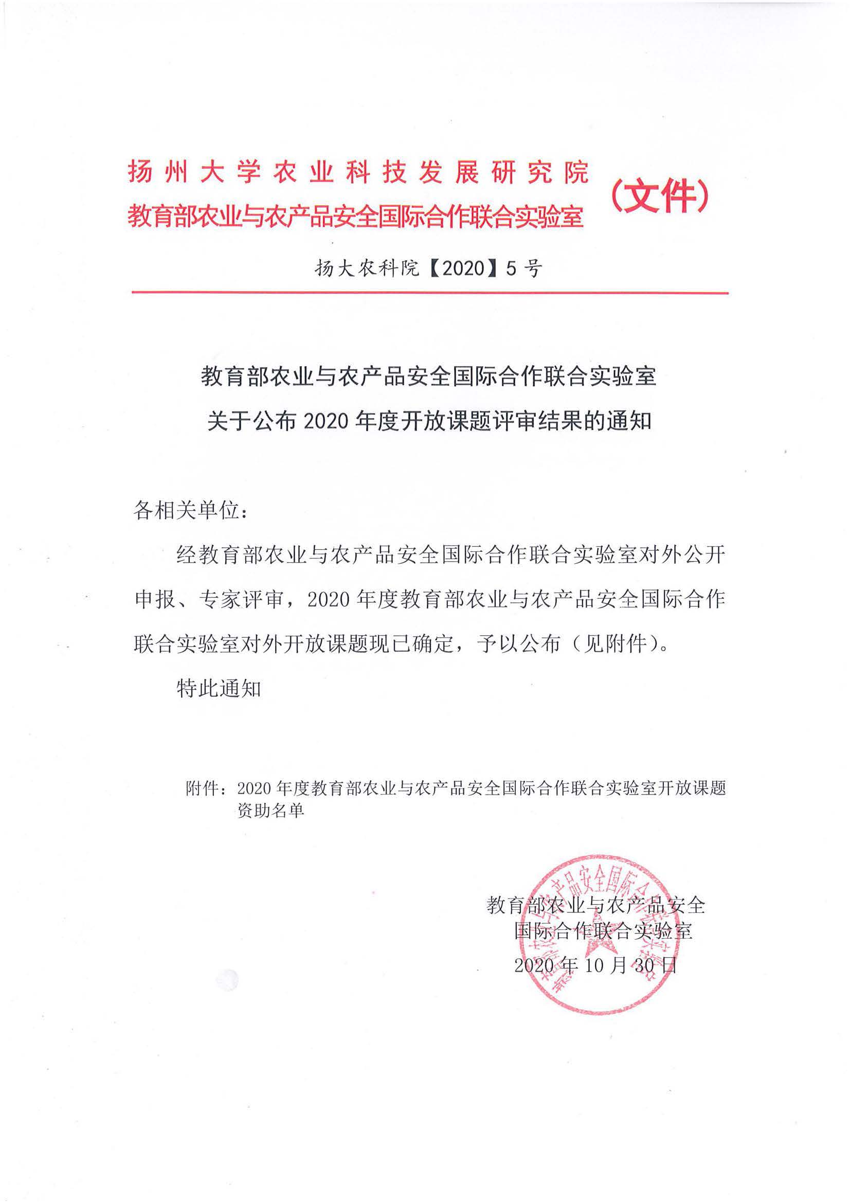 国际联合实验室关于公布2020年度开放课题评审结果的通知