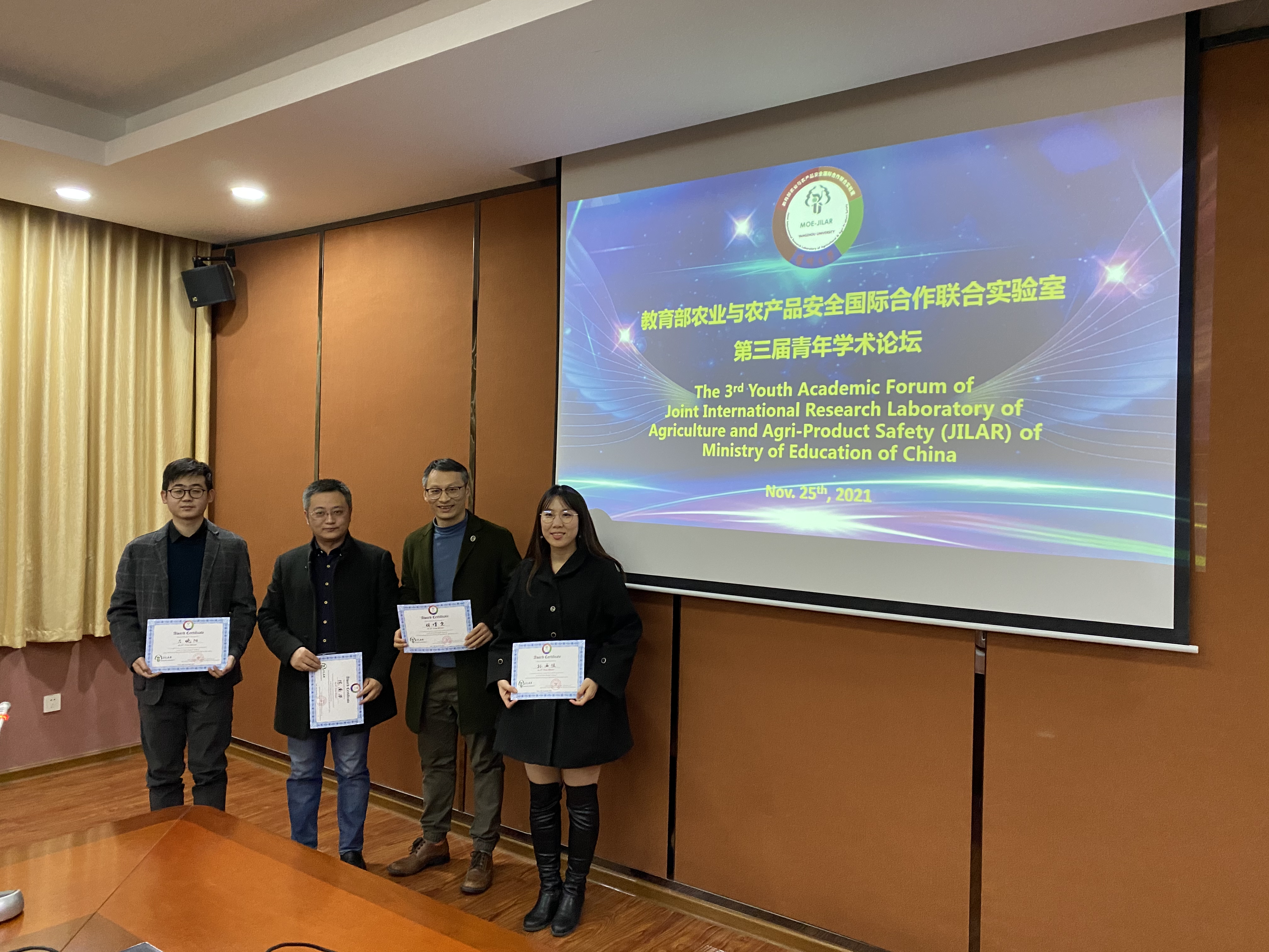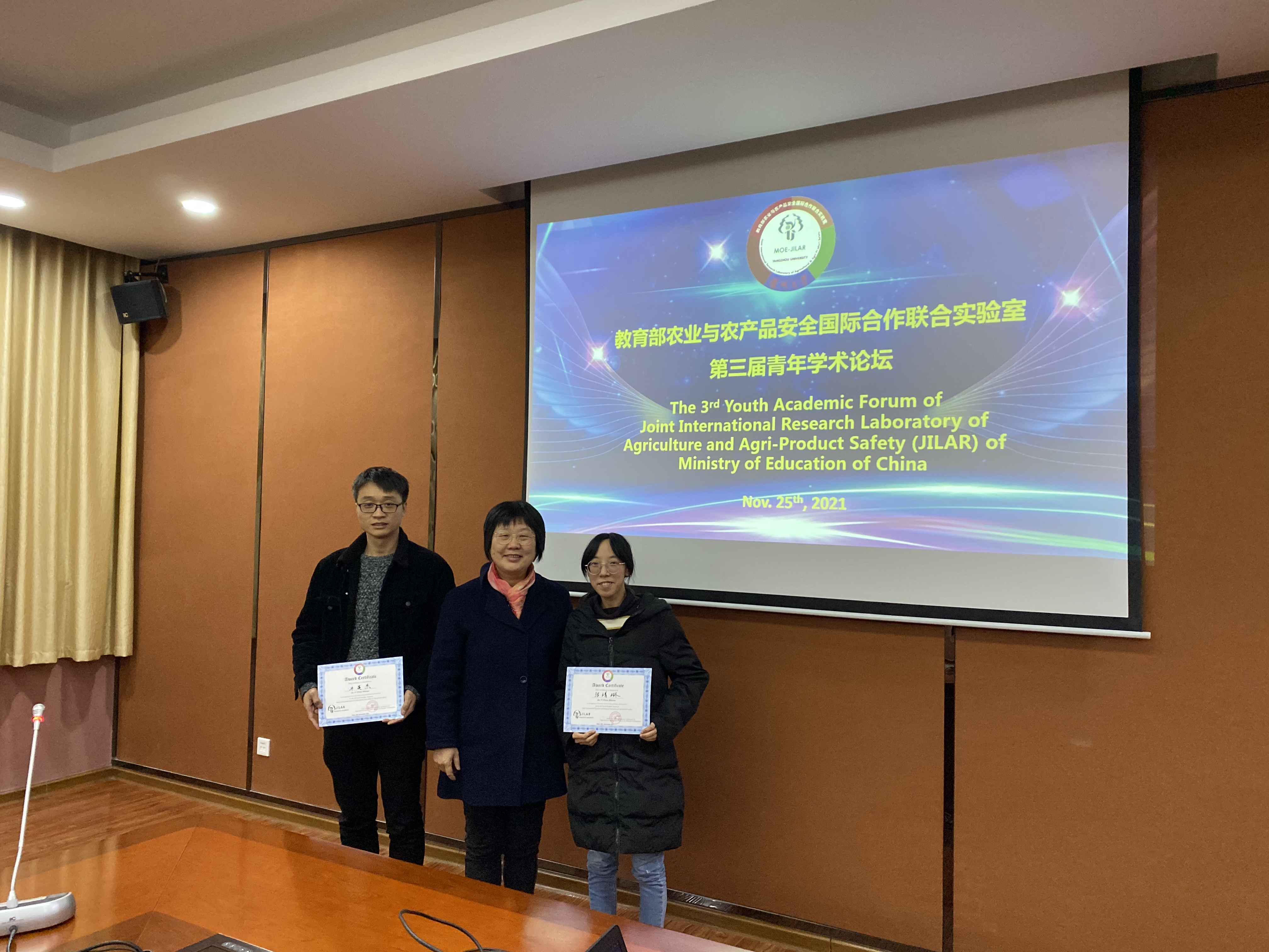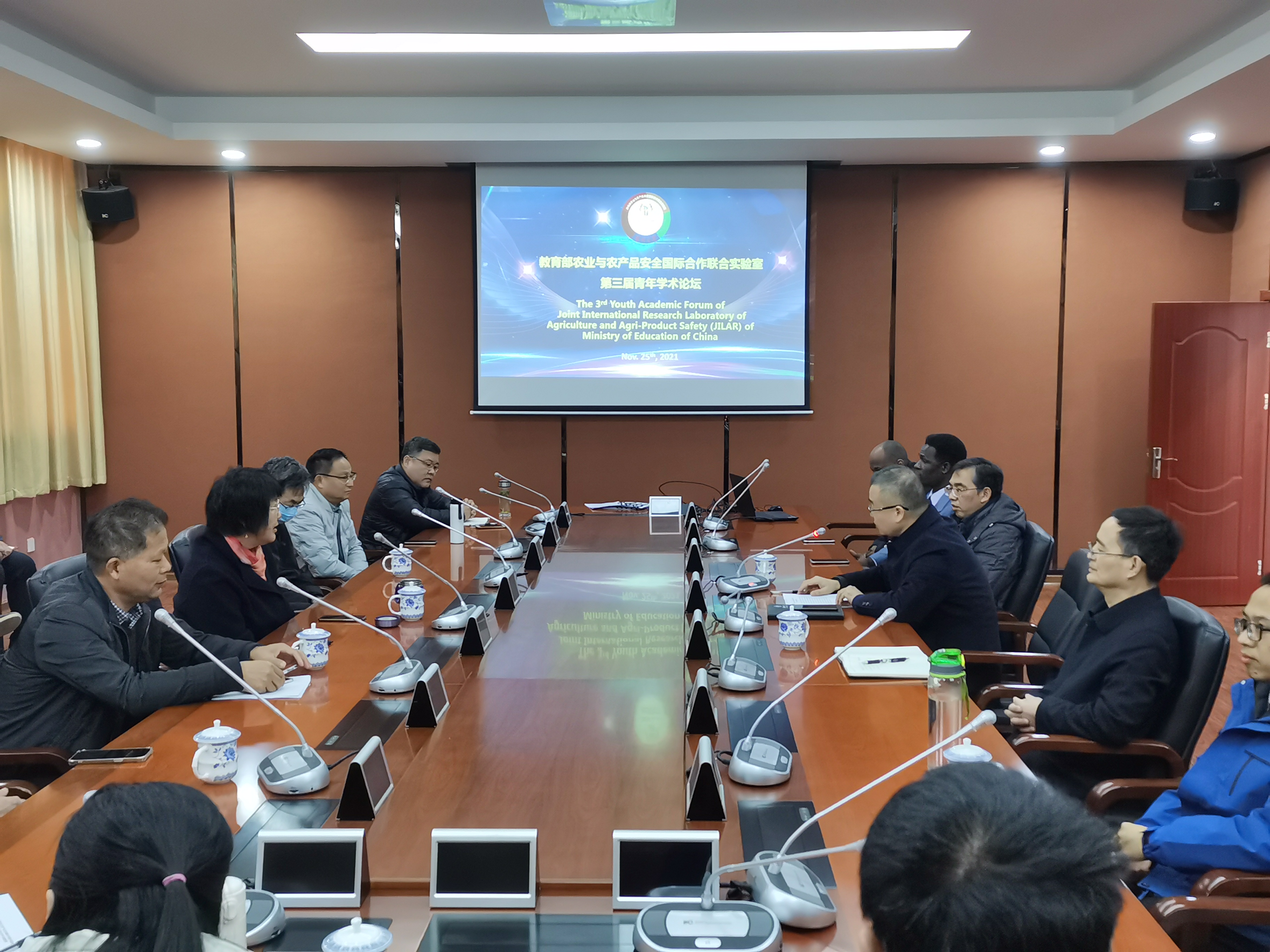 11月25日, 教育部农业与农产品安全国际合作联合实验室举行第三届青年学术论坛。论坛由国际联合实验室主任孙伟主持,实验室副主任曹永忠、周桂生出席论坛。